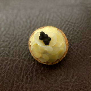 · Onderaan broodkrokant en daarop centraal in het midden de mousse