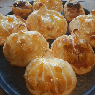 Opnieuw instrijken met eierdooier en met het topje van je mes lijnen of versieringen aanbrengen.