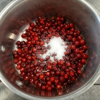 Veenbessen op een rustig vuur laten trekken met de suiker.